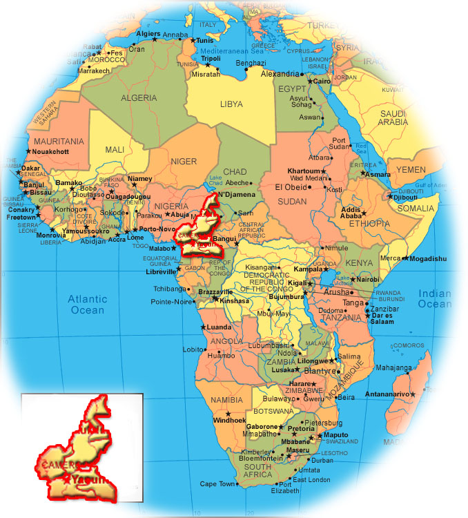 Location of Cameroon in the heart of Africa; Courtesy of map-sharing.org