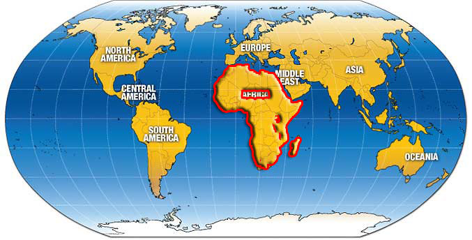 Location of Africa on the World Map; Courtesy of map-sharing.org